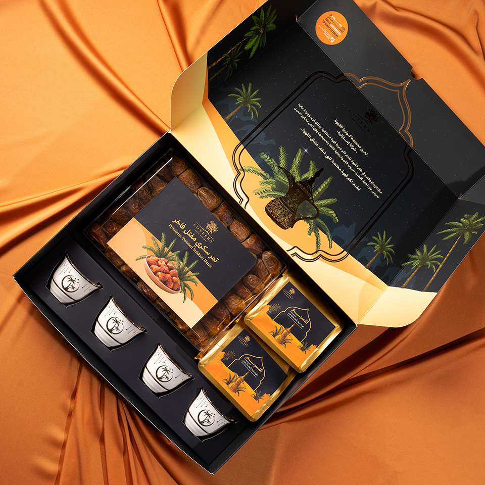 Paired with four elegant Arabic coffee cups and a box of premium Sukari dates, this collection is designed to bring people together, creating moments of connection after every Iftar.